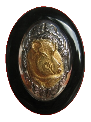 Motiv : Keiler III teilvergoldet Silber : 935 / 000 Größe : 40 mm x 26,5 mm Abschlusskappe Kunststoff: 53 mm x 40 mm |